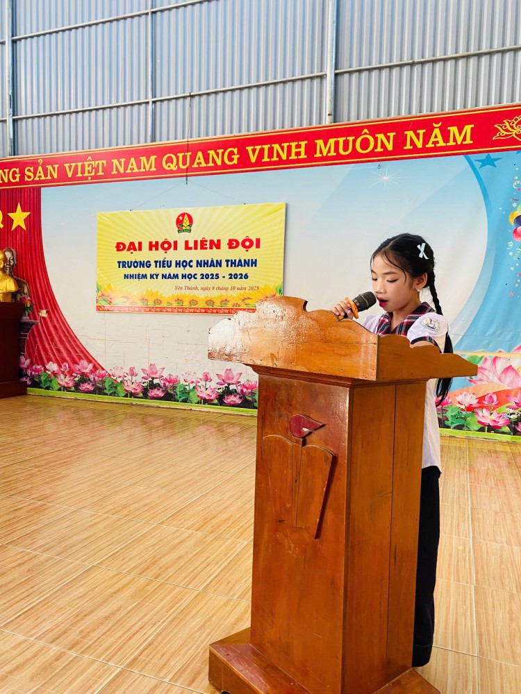 Tại Đại hội, các đại biểu đã nghe báo cáo tổng kết công tác Đội năm học 2024–2025, cùng nhau thảo luận, đóng góp ý kiến cho phương hướng hoạt động của Liên đội trong năm học tới. Đại hội cũng đã bầu ra Ban chỉ huy Liên đội mới – những gương mặt tiêu biểu, gương mẫu, xứng đáng với niềm tin của các đội viên toàn trường. Đại hội Liên đội trường Tiểu học Nhân Thành đã thông qua Nghị quyết Đại hội năm học 2025–2026 với những chỉ tiêu cụ thể, thiết thực, thể hiện quyết tâm của toàn Liên đội như sau: